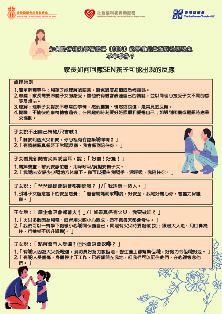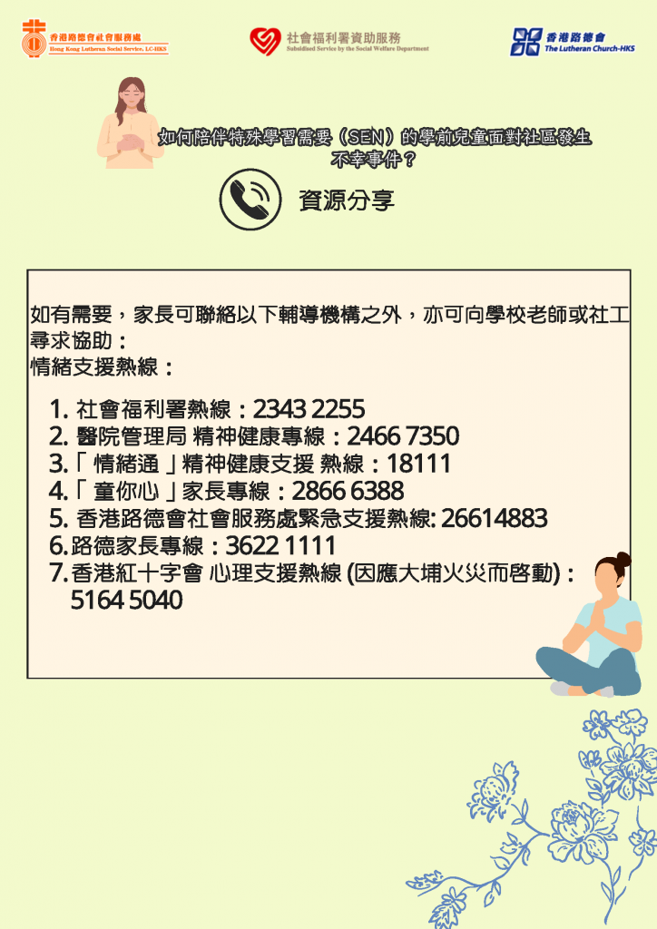 • 如有需要,請參詳以下資訊 ……(如何幫助有特別需要的學前兒童面對不幸事件)